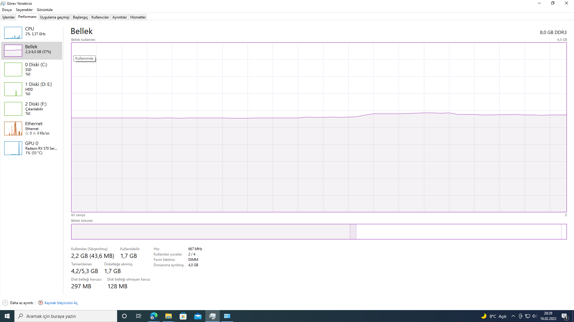 Düzelmişti tekrar aynı sorun oldu.Bilgisayar 8 GB RAM olarak tanınmış ama maksimum 4 GB RAM olarak kullanabiliyorsun. Şu an kullanabilen 4 GB RAM'ın 2.3GB'i kullanılıyor. BIOS'u sıfırla veyahut MSConfig'deki RAM sınırı ellendiysen ayarları eski hale getir.