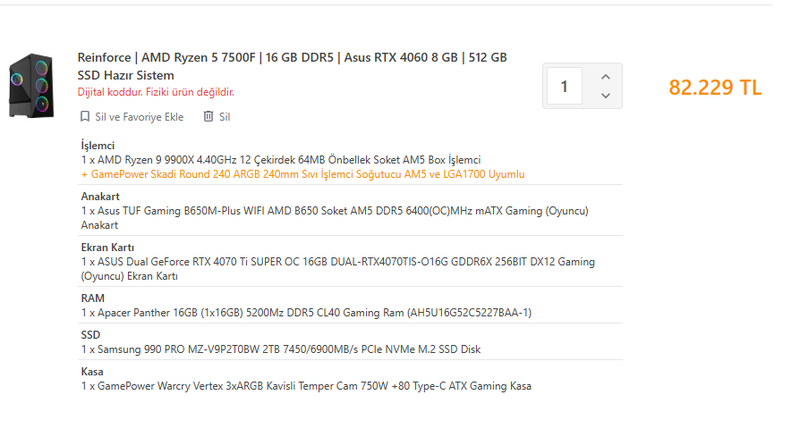 Merhaba, ben hikayeli oyunlar oynayan aynı zamanda FPS oyunları oynayan birisiyim. Bu aralar yeni bir hazır sistem almak istiyorum fakat ya fiyat çok yüksek oluyor ya da parça yok. Bana 80K'lık bir sistem önerebilir misiniz? Fiyat konusunda biraz daha yükseltebilirim.