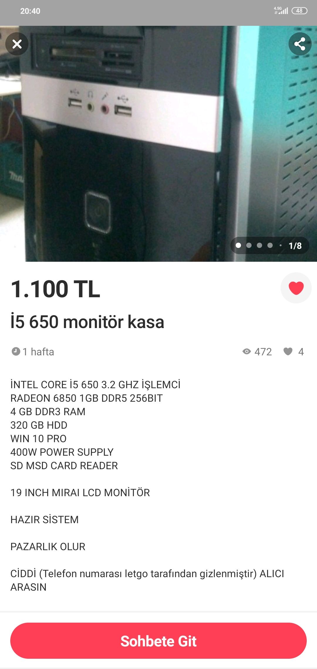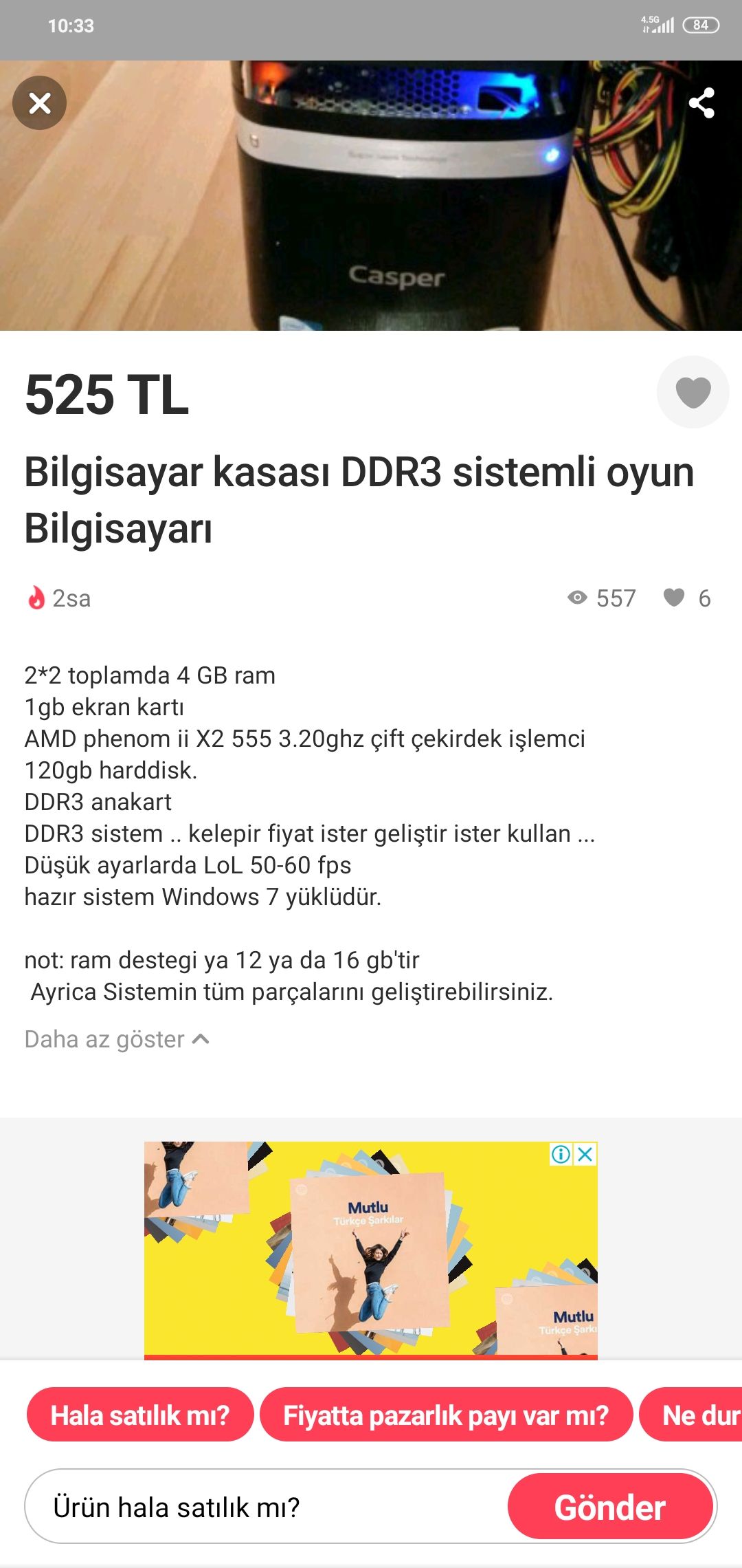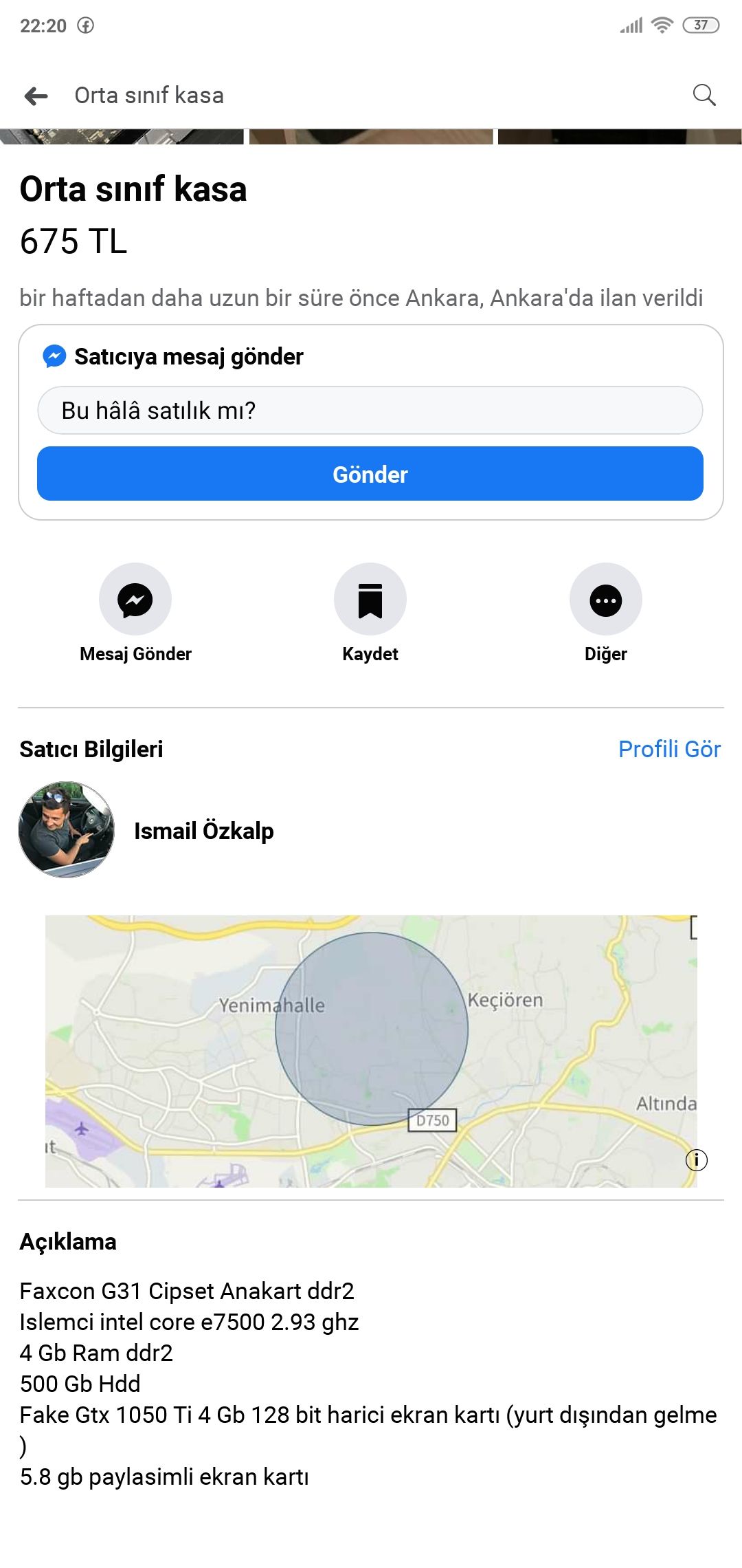 Böylelikle 600 TL tutması gerekiyor en fazla. Kargo, GET derken 800 TL'yi bulur. Önerdiğim sistemin biraz eski olduğunu unutma. Yazdığım çoğu ekran kartı yaşlı, işlemci yaşlı ama bu paraya bu kadar oluyor.