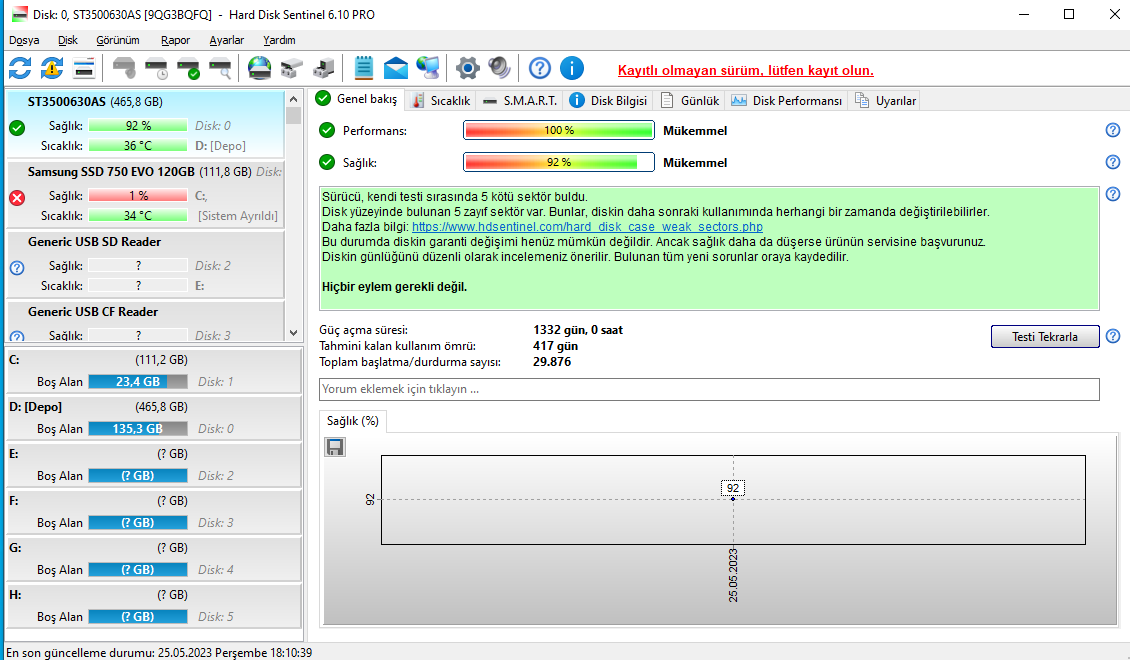 Fotoğrafta gördüğünüz gibi SSD sağlığım %1 bundan dolayı yakın zamanda SSD değiştirmek istiyorum. Uygun fiyatlı 512 veya 256 GB SSD önerebilir misiniz?