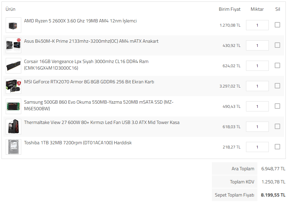 Farklı sitelerden olsaydı çok daha uyguna toplanabilirdi. Şuan 8.200TL yaptı fakat şuradaki topladığım gibi farklı yerlerden daha iyisi 7.565 TL yani 635TL daha ucuza toplanabilirdi. Neyse;
