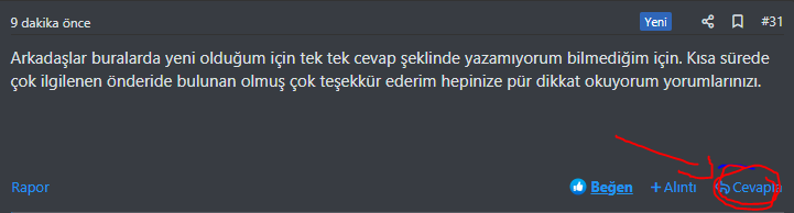 Arkadaşlar buralarda yeni olduğum için tek tek cevap şeklinde yazamıyorum. Kısa sürede çok ilgilenen, öneride bulunan olmuş çok teşekkür ederim hepinize pür dikkat okuyorum yorumlarınızı.