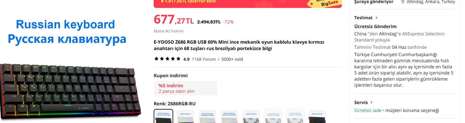E-YOOSO Z686 RGB USB 60% Mini Slim Mechanisch Gaming Bedraad Toetsenbord Rode Schakelaar 68 Toetsen Russisch Braziliaans Portugees voor Compute - AliExpress 7