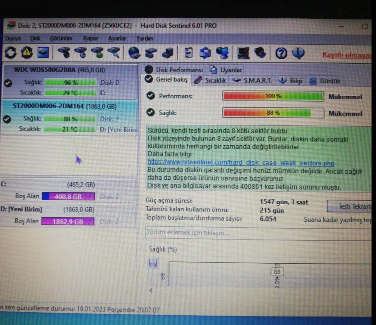 İkinci elde 400TL'ye 2TB 88 sağlıklı HDD buldum, 8 kötü sektör var.