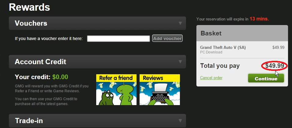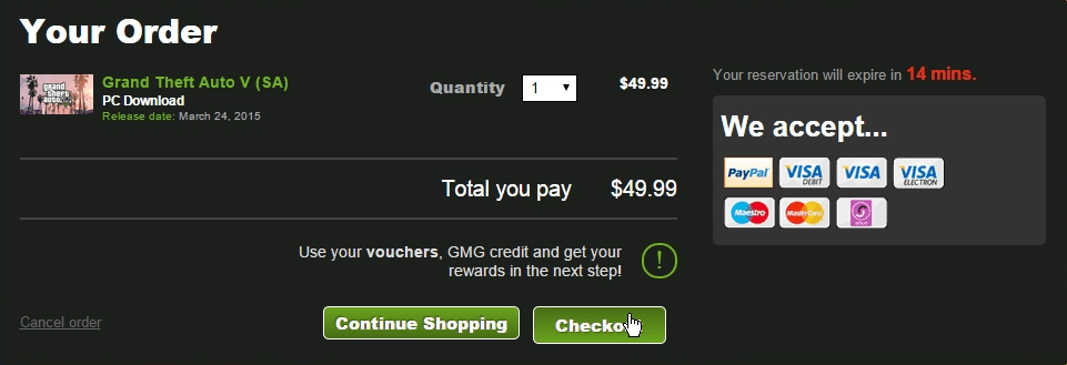 Green Man Gaming sitesinde GTA V 50$ fiyata satılmakta.