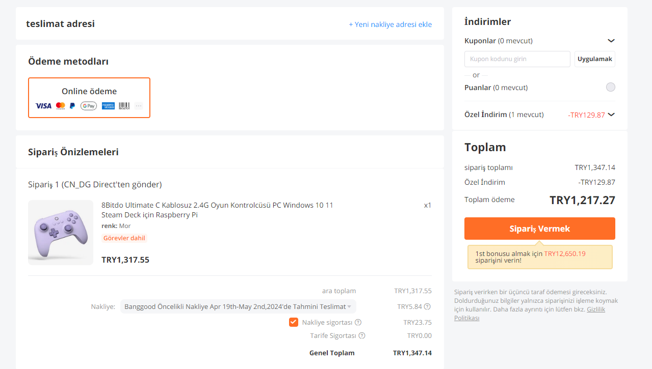 Fiyatı çok. Banggood da yeni hesaplara verilen ilk sipariş kuponu ile 1217 TL.
