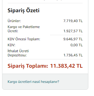 Hocam bilmediğimden soruyorum, zaten ithalat ücreti varken kargo ve paketleme neden 2 bin TL?
