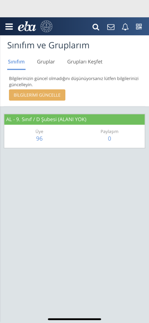 9. sınıf mevcudu 96 kişi gözüküyor