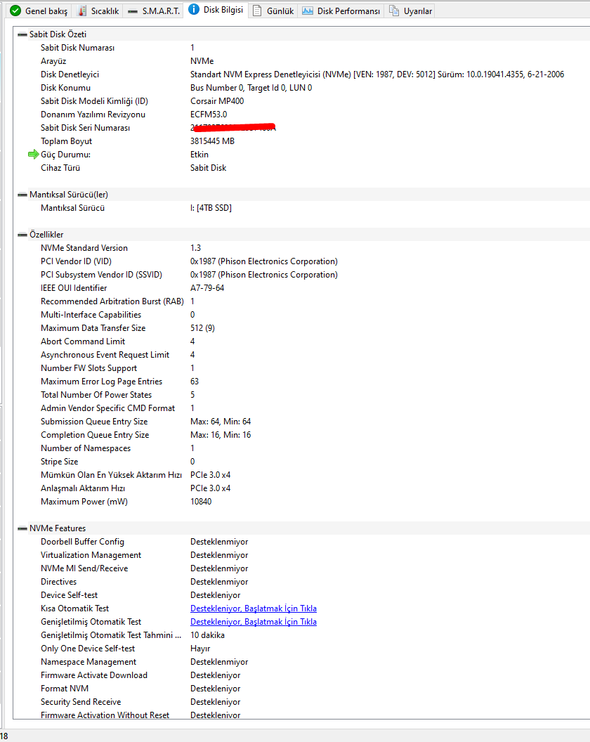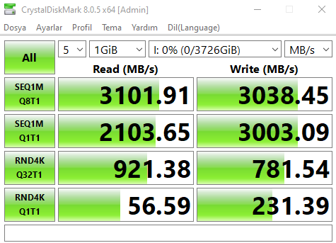 Test sonuçları aşağıdaki gibidir, sizce bir problem var mı bu SSD'de?