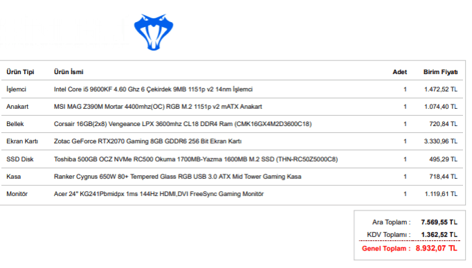 Büyük ihtimalle tüm bu parçaları daha ucuza bulabilirsiniz, ben genelde kendi güvendiğim sitelerin bağlantılarını koydum.