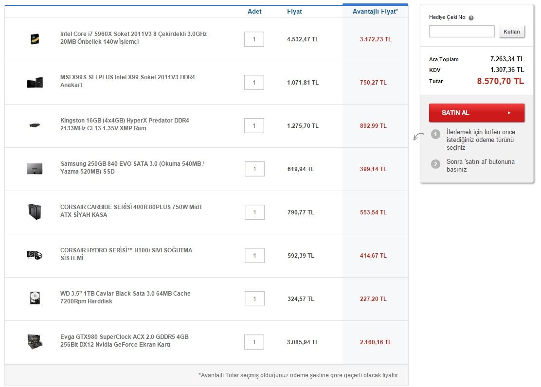 Sistem burada. GTX 980 ile çalışma erkanında rahat edersin. Ama V-Ray ADV ile render alacağın için render süren tamamen işlemci ve ram üzerinden sonuçlanır. ( Bilmeyenler için söylüyorum) Ayrıca GTX 980 ile active shade açıp çizim yaparken aynı anda render edilmiş halini de görürsün. Diğer yandan tüm GPU render motorları CUDA destekli olduğu için ileriye dönük bir yatırım olur. iRay veya Octane render denemek istediğinizde ekran kartı değiştirmek zorunda kalmazsınız. Mimari işler için mükemmel bir bütçe ve sistem oldu. Yalnız işlemciye overclock yapmayı unutmayın.