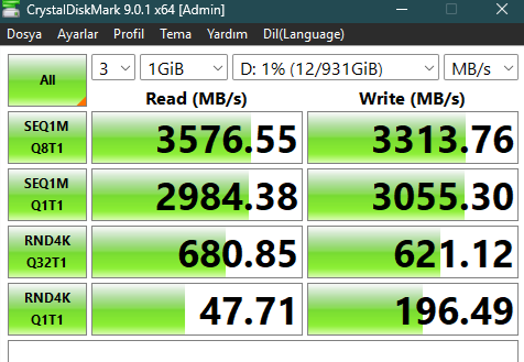 Herkese iyi sosyaller arkadaşlar, yeni sistem topladım ama SSD yavaş çalışıyor gibi geldi, eski sistemde 1 tane 970 EVO Plus 1TB SSD kullanıyordum sorun yaşamadım. Yeni sisteme geçince aynı SSD'den 1 adet daha aldım ve yeni aldığıma sistemi yükledim eski olanı D diski olarak ayarladım. Driver yüklemelerinde ve diğer program yüklemelerinde gereğinden fazla yavaş yüklendiğini fark ettim. Eski sistemde hızlı yükleniyorlardı. Testleri attım bir anormallik var mı anlamadım. İşlemci AMD 7500F anakart ASUS B650M-R kullanıyorum.