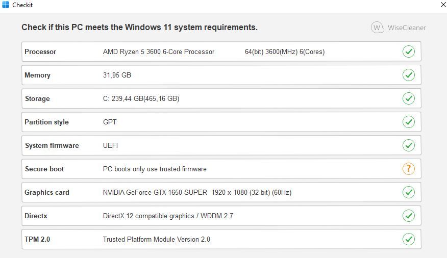 Merhaba uzun süredir kullandığım wise disk cleaner programında bugün temizlik yaparken alt sekmede Windows 11 check programı gözüme takıldı. Testi hemen yaptım. Böyle bir sorunla karşılaştım. Tam olarak ne demek? Görseli bırakıyorum.