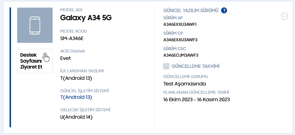Galaxy A34 5G | SM-A346E | Güncellemeleri | Guncelmiyiz.com