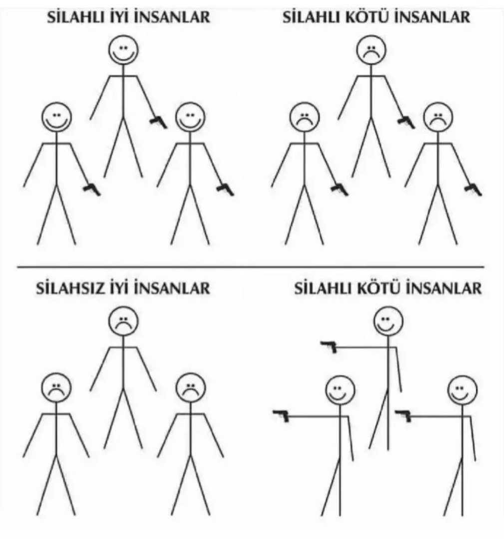Büyük güç büyük sorumluluk getirir, eğer sen şeker dağıtır gibi silah dağıtırsan o silahlarla ufak şakalar yapabilirler. Cinnet geçirip yolda gördüğü herkesi kurşuna dizebilir mesela.