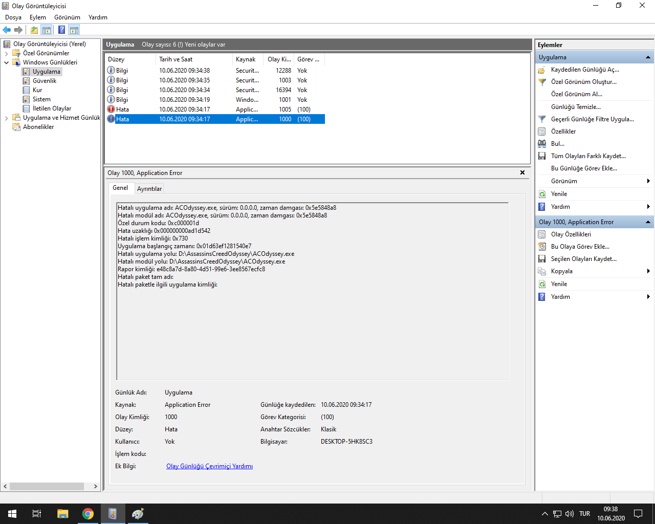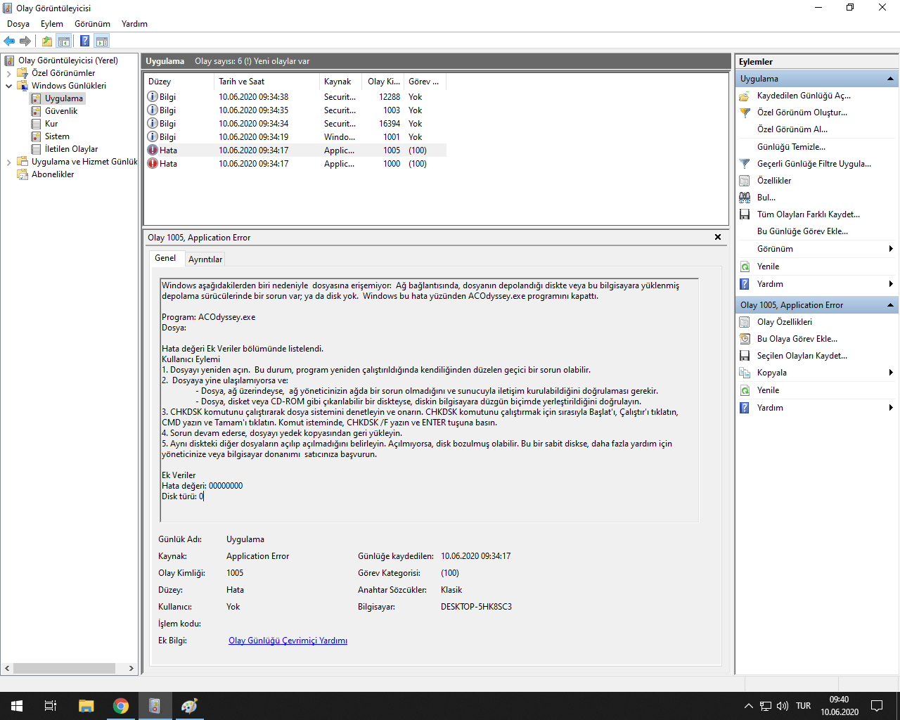 Başlat menüsüne sağ tıklayın ve Olay Görüntüleyicisi'ni seçin: Şimdi soldan Windows Günlükleri, sonra da Uygulama sekmesine girin: Bir sonraki aşamada sağdan Günlüğü Temizle... deyin ve gelen pencereden de Temizle seçeneğini seçin. Şimdi çöken uygulamayı tekrar çalıştırın. Uygulama...www.technopat.net
