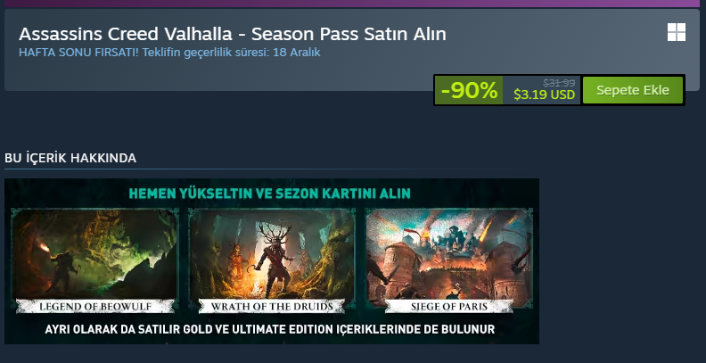 Fiyatı bu şekilde, bu DLC'leri oynamaya değer mi? Yoksa başka bir tane DLC var Ragnarok diye, bu season Pass'i almak yerine onu mu alayım?