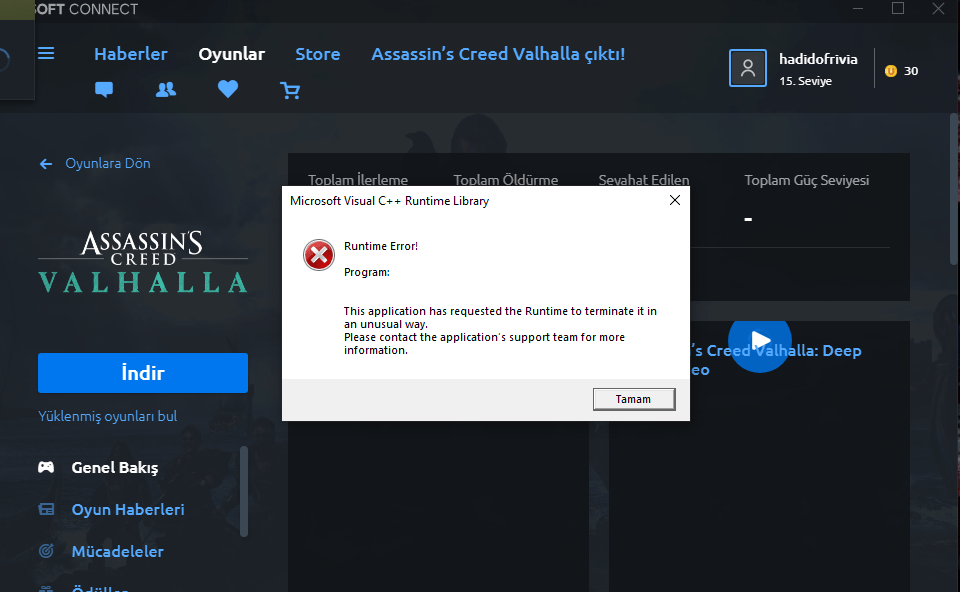 Arkadaşlar, yeni Assassin's Creed Valhalla aldım oyunu indirmeye çalışınca sürekli bu hata çıkıyor. Ne yapmalıyım?