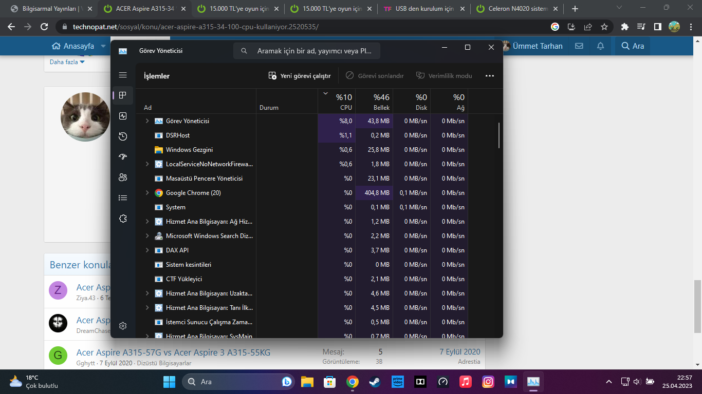 ACER Aspire A315-34 %100 CPU kullanıyor