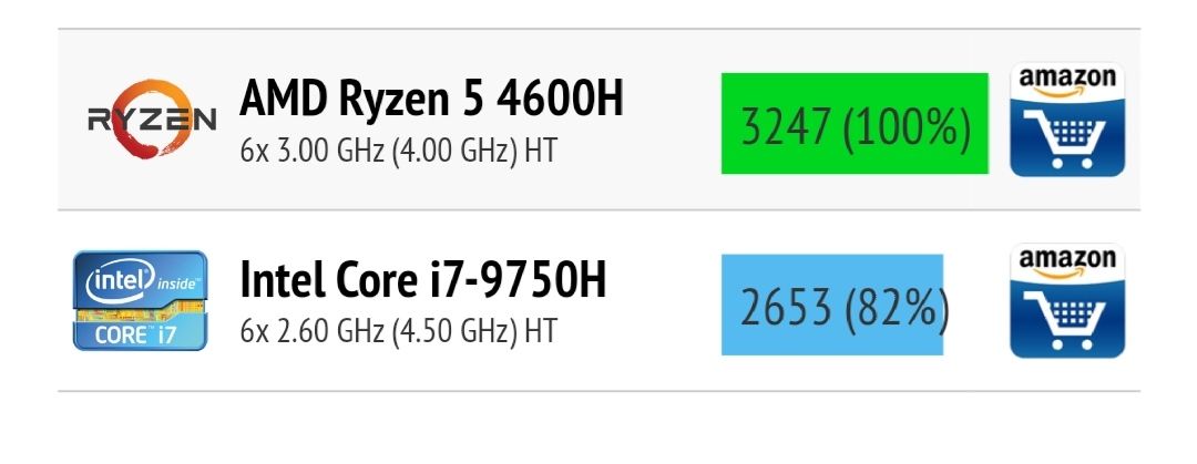 Tekli çekirdek ve çoklu çekirdek performansı i7 9750H'a göre daha iyi,