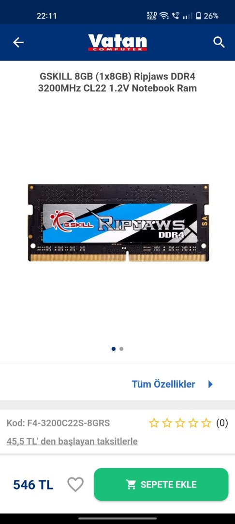 Şu an takılı olan RAM'in seri numarasından aynısını bulabilirsem bende ondan alacağım.