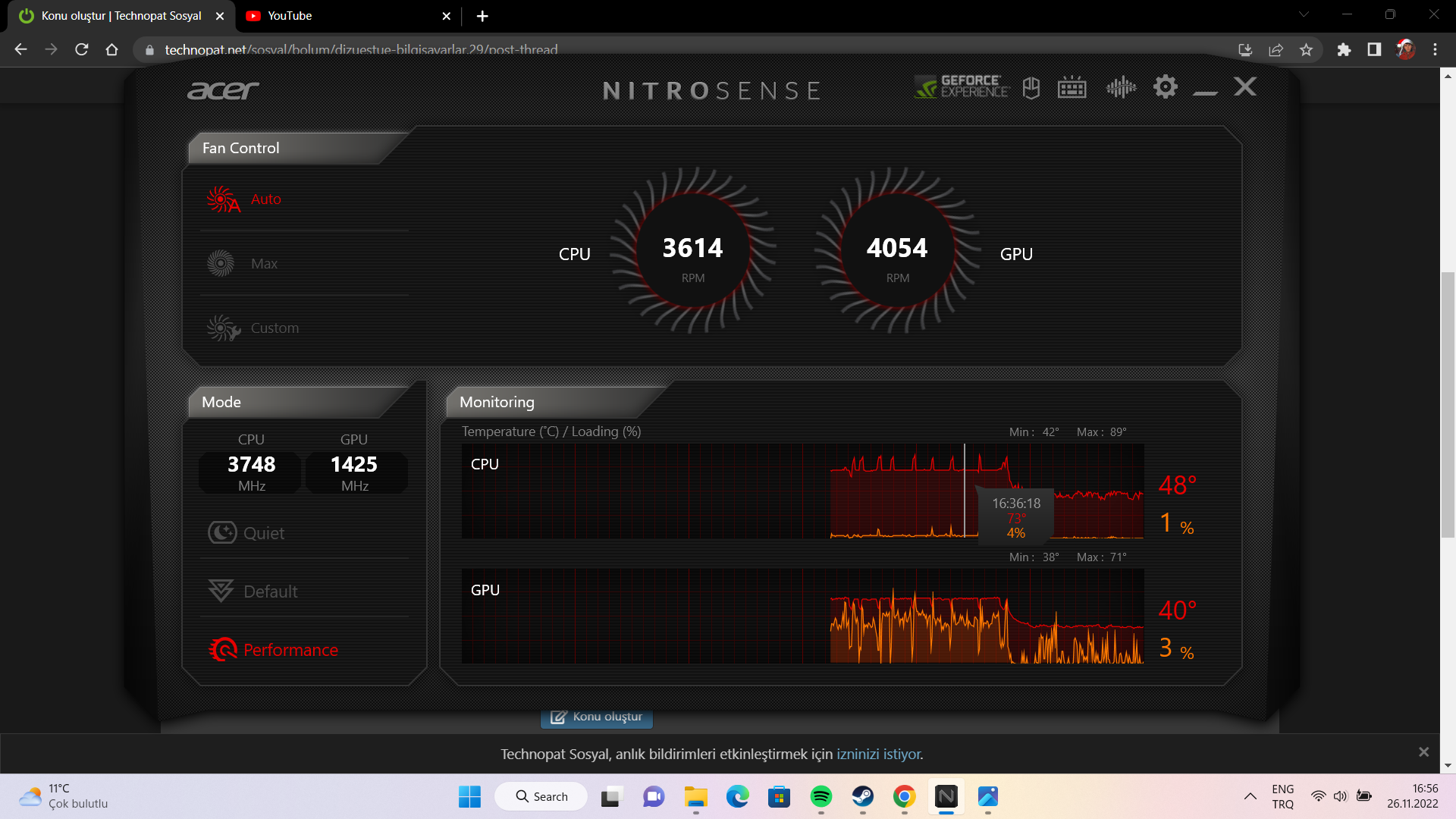 Ayrıca Nitro sense yazılımı çok fazla güç harcıyor, boştaki değerler gerçek değerler değil.