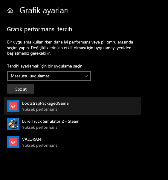 Kontrol panellerinde kararı uygulamaya bırakın seçeneği kullanarak grafik ayarlarını oyun içerisinden düzenleyin.