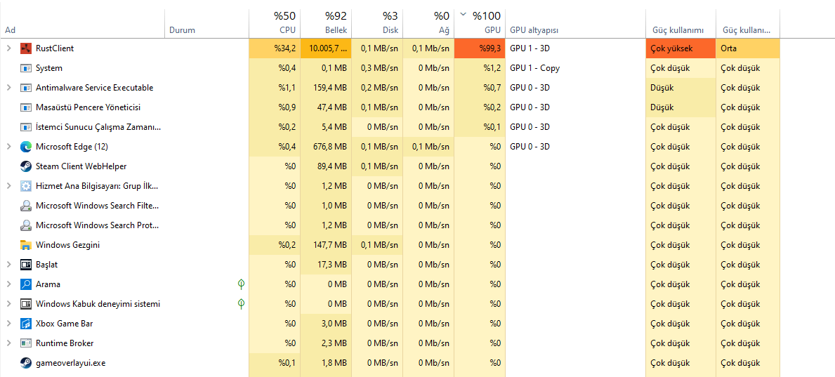 Arkadaşlar Rust oynuyorum. Önceden 1080p yükek ayarlarda 60 FPS alırken şu an 720P'de düşük ayarlarda 21 FPS veriyor.