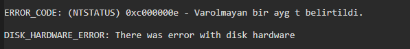 Böyle yazılar görünce direkt disk kontrol edelim dedim. Aslında bu yüzden dedim.