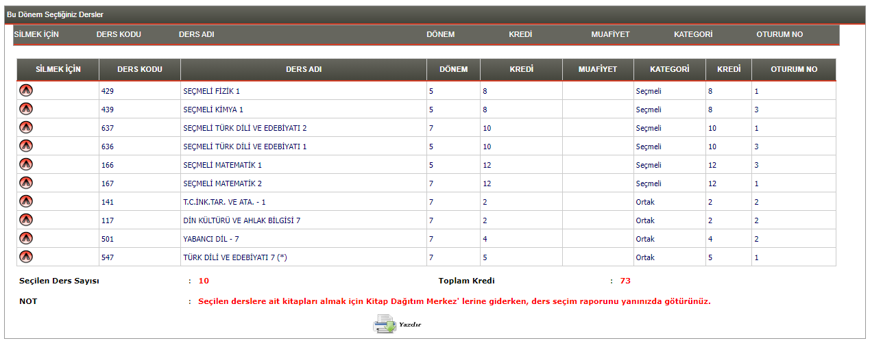 Evet, 8 tane zorunlu dersiniz bulunuyor. Ortak yazanlar zorunlu dersler, 4 tanesini seçmişsiniz. Aslında seçmeli dersleri seçmek yerine ortak zorunlu dersleri seçseymişsiniz bence daha iyi olurmuş. Sorun değil gene de ikinci dönem de kalan zorunlu derslerinizi alır, liseyi bitirirsiniz. Bir de kredi şartı da var, onu da biliyorsunuzdur sanırım. Ders seçimin yanlış değil, doğru. Bu dönem seçtiğin 4 ortak dersi verirsen de 2. dönem için 4 ortak dersin kalacak.