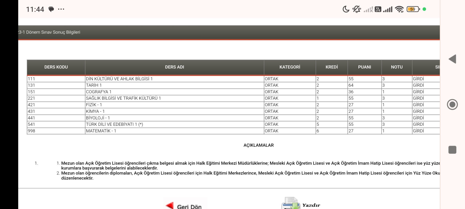 Durum bu şekilde 2.döneme geçebiliyor muyum? Ne yapmam lazım şimdi? Teşekkür ederim.