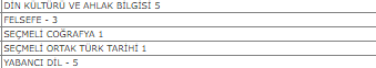 Ders ders donem var. Ornegin edebiyat donem 5, edebiyat donem 7 gibi.