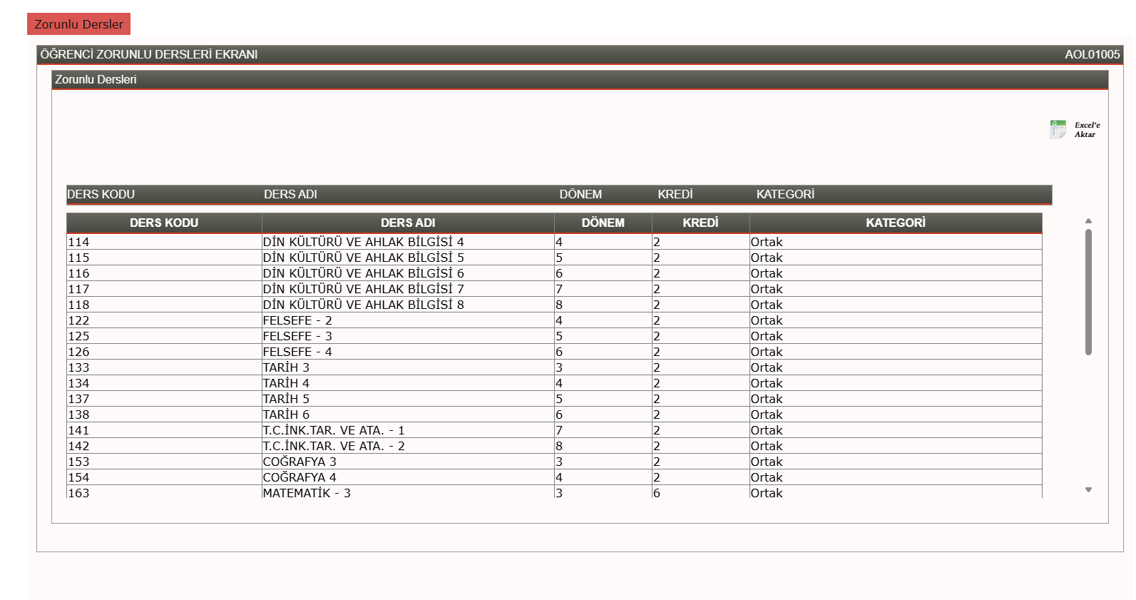 Kırmızıyla çizdiğim yerler de dönem ve zorunlu ders sayısı. Toplam 8 dönem ve üzeri okumalısınız. Zorunlu dersiniz de kalmamalı. Ya muaf olmalı ya da başarılı olmalısınız. Bir dersin sınavından 3 sınav kalırsanız da muaf oluyorsunuz. Kredisini alamıyorsunuz. Türk Dili ve Edebiyatı dersinden muaf olamıyorsunuz, o dersi başarmak zorundasınız. Genel olarak 170 kredi, 8 dönem zorunluluğu ve ortak dersin kalmaması şartlarını sağladığınız an mezun olursunuz.