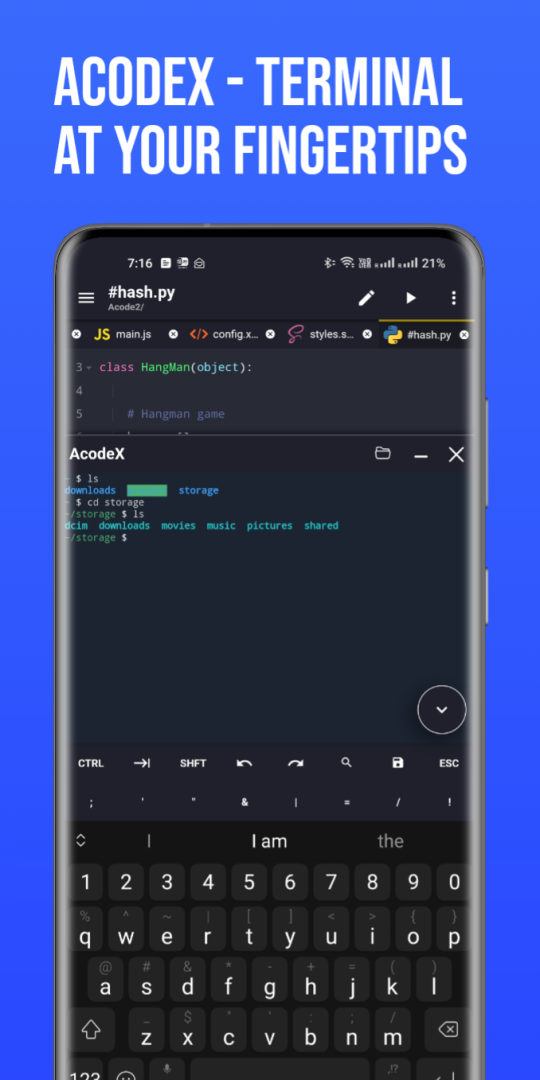 Acode, web sitelerini doğrudan tarayıcınızda oluşturmanıza ve çalıştırmanıza, entegre konsolu kullanarak kolaylıkla hata ayıklamanıza ve Python ve CSS'den Java, JavaScript, Dart ve daha fazlasına kadar çok çeşitli kaynak dosyalarını düzenlemenize olanak tanır.