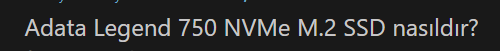 Adata Legend 750 NVMe M.2 SSD nasıldır? Ben bunu Asus Z97 Pro Gamer anakartımda kullanmayı düşünüyorum. Anakartımdaki M.2 yuvası yüksek hızları desteklemiyor, SATA kadar düşük hızlarda olmasa da onun biraz daha üstündeki hızlara çıkabiliyor. Ama yine de M.2 yuvası varken neden SATA SSD kullanayım ki?