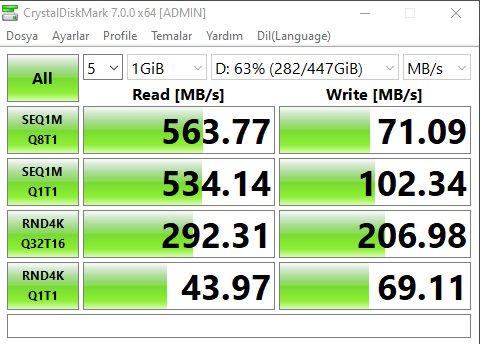 Kısaca Adata SU 630 ve 650 pişmanlıktır. 4 yıllık, en az 3 kere formatlanmış bir SSD bile bu SSD'den daha iyi sonuçlar verebiliyor.