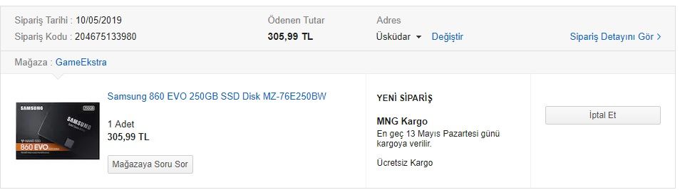 Samsung 860 EVO sipariş ettim arkadaşlar direkt olarak. ADATA gönül rızası ile iade almazsa THH konusu içerisinde kanuni yollardan parayı nasıl geri aldığımı da paylaşırım.