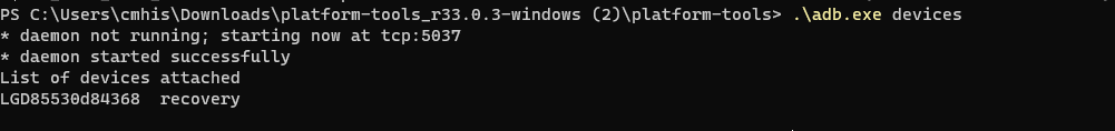 Konuya hızlıca girmek istiyorum. LG G3 telefonumda LineageOS 18.1 kurmuştum, güncellemeleri yaparken Recovery'i de güncellemişim. Telefondan TWRP silindi. Telefonun SD kart girişi bozuk olduğundan daha önceden işlerimi ADB yolu ile halletmiştim ama daha önceden kullandığım toolu bulamadığımdan CMD ile beceremedim.