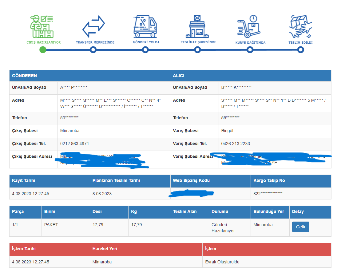 Adıma kargo verilmiş