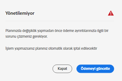 İptal etmek istediğimde "yönetilemiyor" diyor.