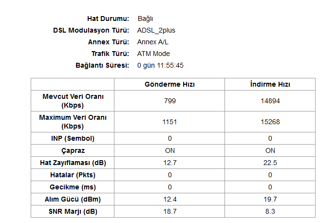 Mesela benim SNR Margin değerim iç tesisat yüzünden değil binaya kadar gelen altyapıdan dolayı düşük.