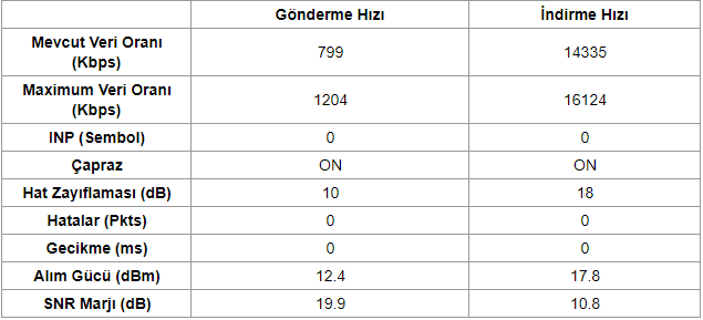 Arkadaşlar hat değerlerim bu şekilde. Sizce nasıl? Geçtiğimiz yılın son aylarında yeni hat çektirmiştim hatta çok gürültü var diye.
