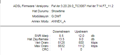 modemi senin odandaki hatta takınca modem arayüzünden snr margin değerini kontrol et.