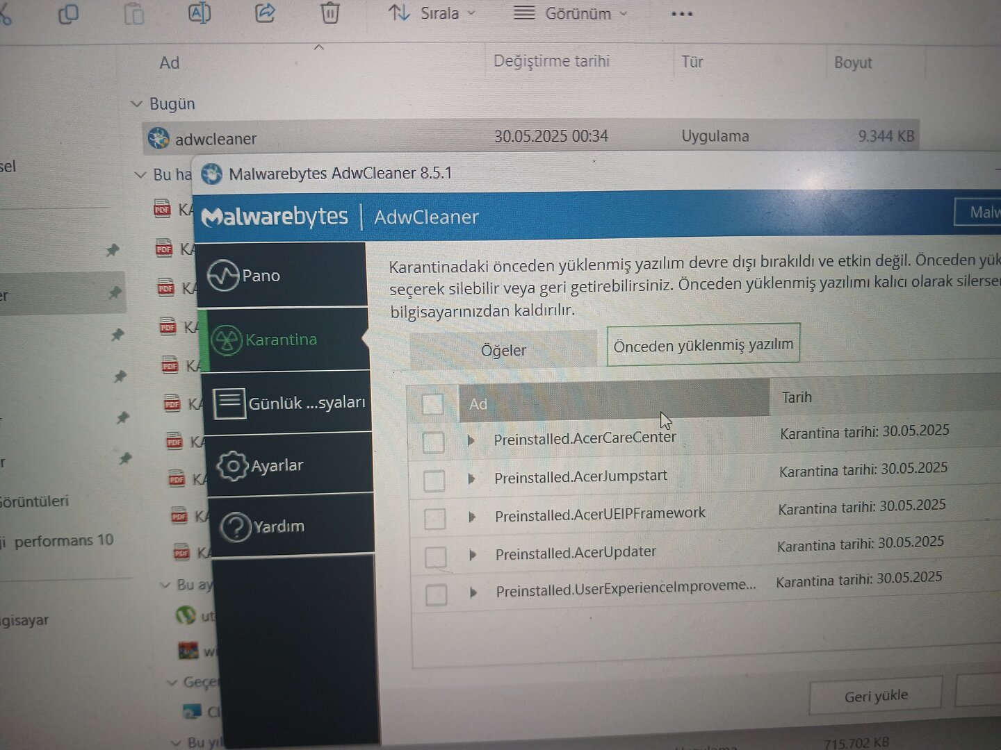 Malwarebytes AdwCleaner bunlari buldu. Bunlar nedir? Sileyim mi geri mi yukleyeyim?