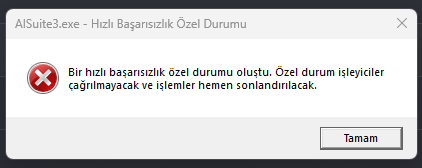 AI Suite 3 açılmıyorsa ve “Bir hızlı başarısızlık özel durumu oluştu. Özel durum işleyiciler çağrılmayacak ve işlemciler hemen sonlandırılacak” hatası veriyorsa, büyük ihtimalle sorun yazılımın eski veya bozuk sürümünden, uyumsuz BIOS’tan veya sistemdeki Intel/ASUS bileşenlerinin çakışmasından kaynaklanıyor. Öncelikle bilgisayarını yeniden başlatıp AI Suite 3’ü yönetici olarak çalıştırmayı dene. Eğer hâlâ açılmazsa, AI Suite 3’ün en güncel sürümünü ASUS’un resmi sitesinden indir ve eski sürümü tamamen kaldırdıktan sonra temiz kurulum yap. BIOS’un güncel olduğundan emin ol; gerekirse anakart modeline uygun en son BIOS’u yükle. Ayrıca, sistemdeki Intel Management Engine Driver ve Intel Chipset Driver’ların güncel ve doğru kurulu olduğundan emin ol. Bazen bu sürücüler eski veya hatalıysa AI Suite 3 hata verebilir. Tüm bunlardan sonra hâlâ sorun devam ediyorsa, yazılımın bazı bileşenleri Windows ile çakışıyor olabilir; o zaman AI Suite 3 yerine sadece gerekli modülleri (fan kontrol, voltaj izleme gibi) ayrı ASUS uygulamalarıyla kullanmak daha stabil bir çözüm olur.