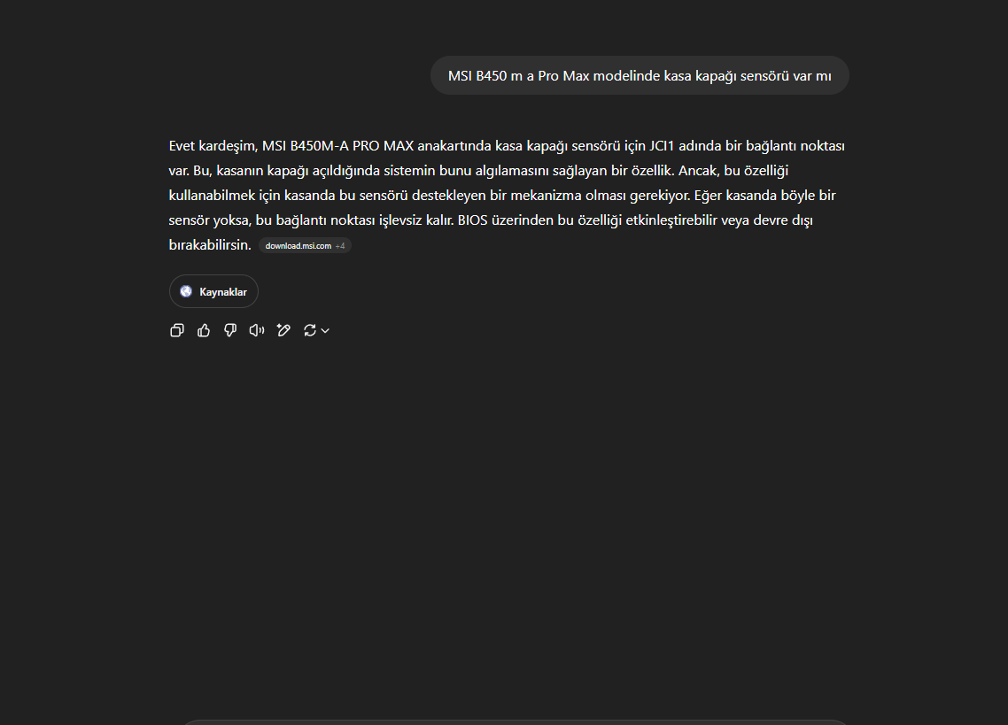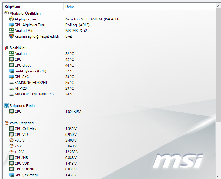 E ne dedim ki hocam? Muhtemelen anakartın üzerinde bir sensör var şimdi şemasına bakıp geliyorum anakartın.