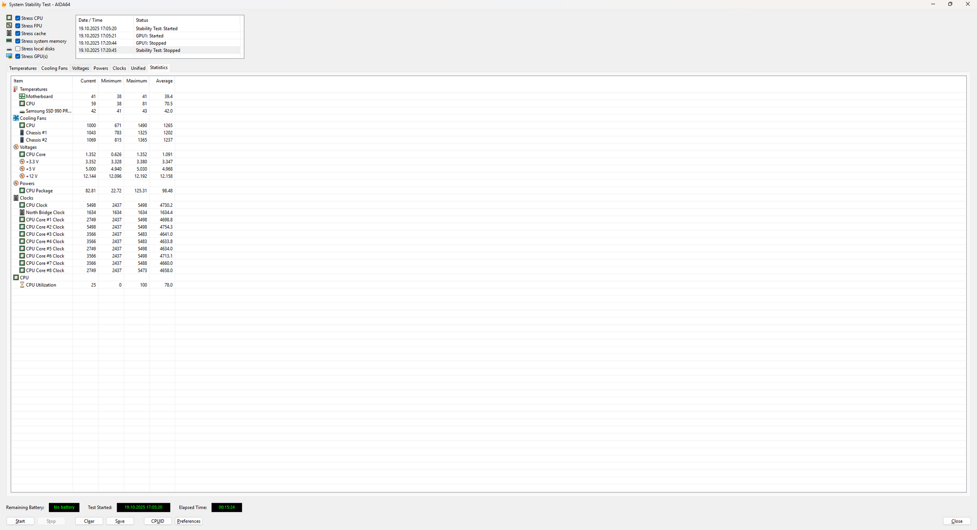 AIDA64 Extreme uygulaması üzerinden sistem testi sonuçlarım nasıl? bilgisayar sistem özellikleri: işlemci (CPU): AMD Ryzen 7 9700X. ekran kartı (GPU): Galax RTX 5070. anakart: MSI MAG B650 Tomahawk Wi-Fi RAM: 32 GB Patriot Viper Venom DDR5. depolama: Samsung 990 Pro 1 TB SSD. güç kaynağı: ENERMAX maxpro III 700W. kasa: MSI MPG velox 100p airflow. soğutucu: Thermalright Peerless Assassin 120 SE. Bu da şu an boştaki değerler.