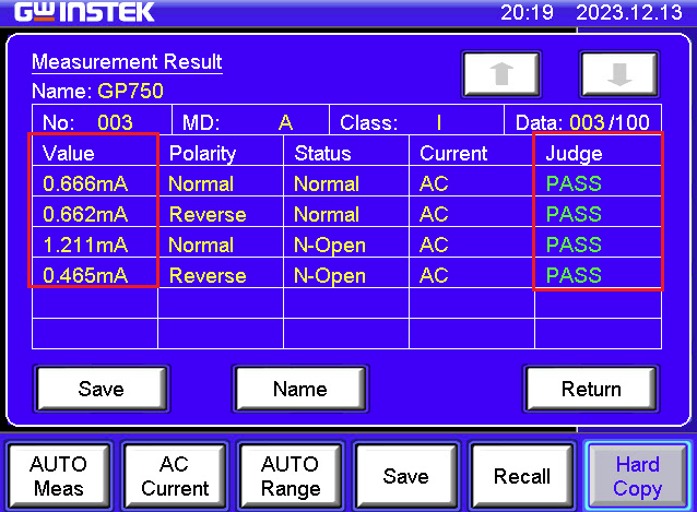 Görebileceğiniz gibi, soldaki “value” kısmında kaçak akım değerleri yer alıyor. 3.5mA altındaki değerler normal kabul ediliyor ve ölçülen değerler bu sınırların oldukça altında.