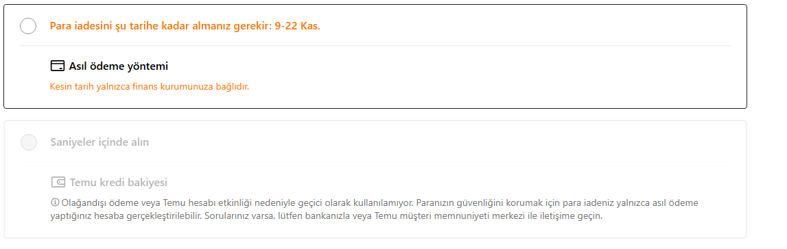 malesef kapalı hocam krediye çekme. Kartıma çekersem de ne kadar sürede iade olacağı belli değil. Bazıları 1 ay bile sürdüğünü söylüyor iadenin.