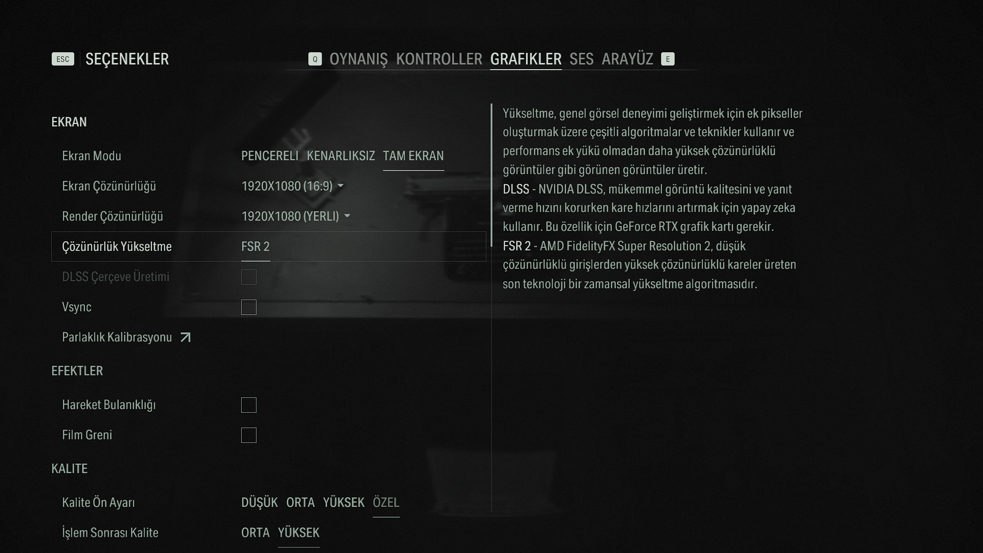 DLSS + Kalite seçeneğini açmanız yeterli. DLSS 3 destekli oyunlarda Frame Generation seçeneğini açın ki HUD titremesin.